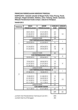 Malaysia Students School Calendar 2013 Kalendar Persekolahan Tarikh Cuti Sekolah Takwim Sekolah 2013